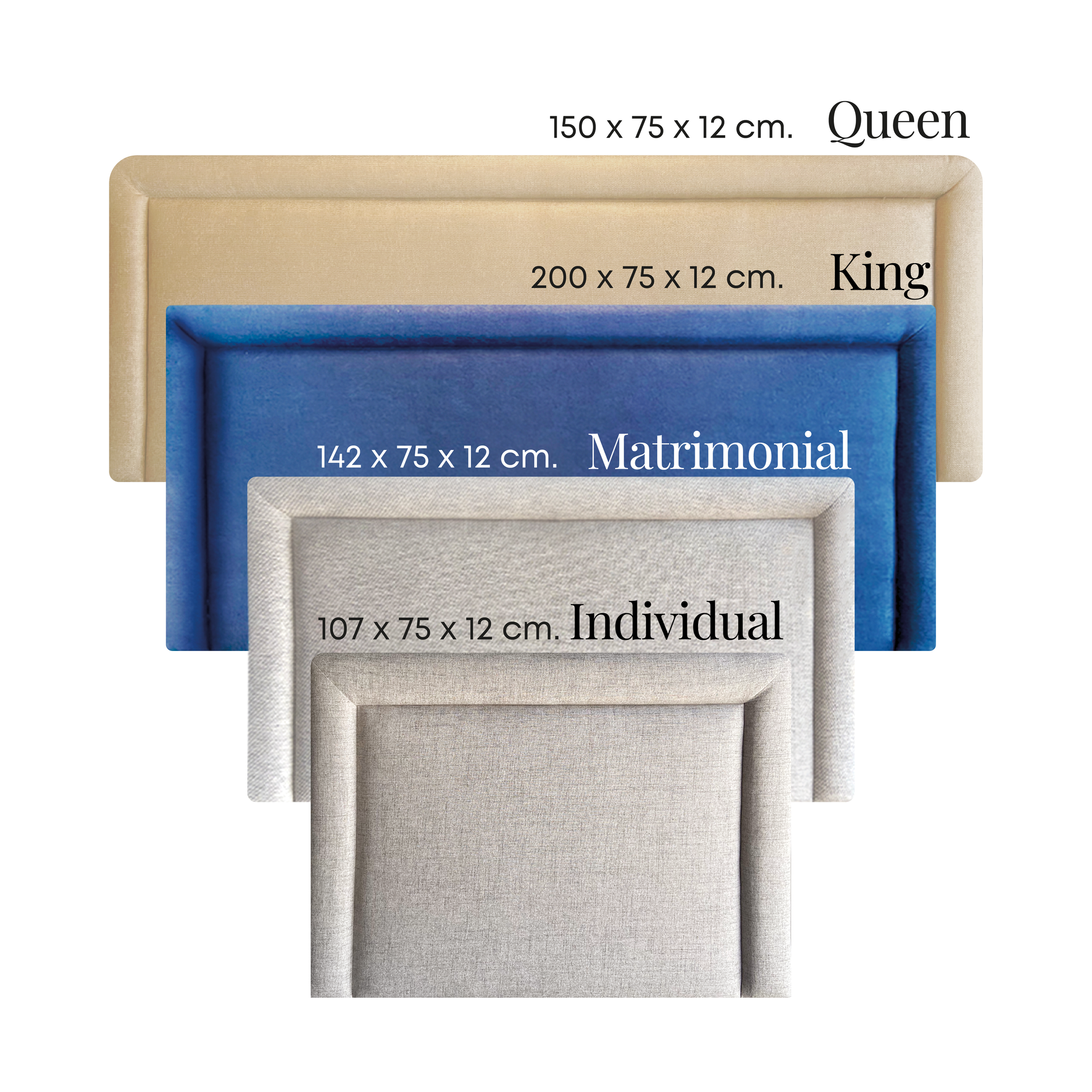 Queen: Frente: 157 cm, Fondo: 9 cm, Altura: 75 cm